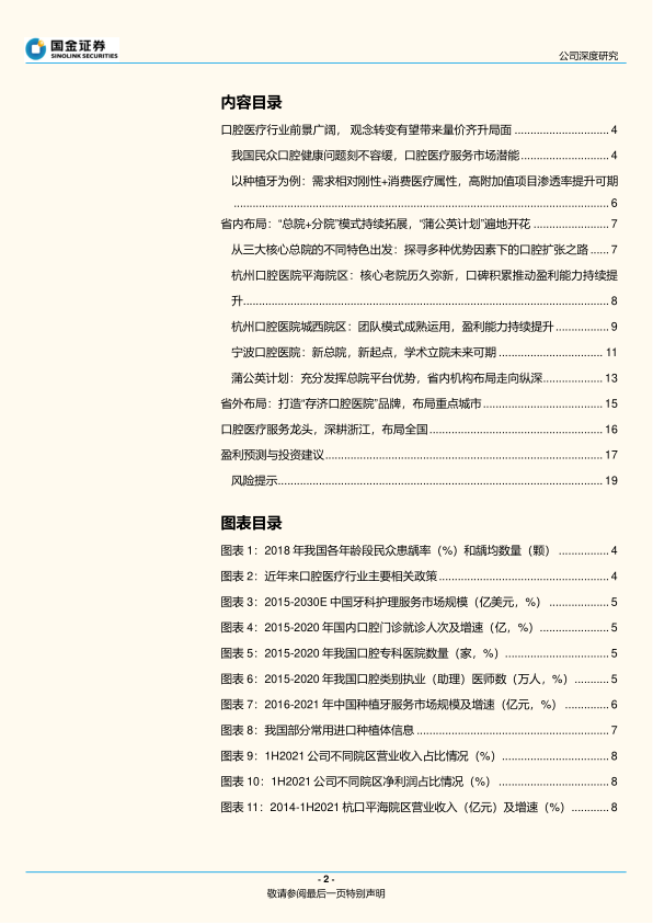 省内拓展“蒲公英计划”,省外打造“存济”品牌。公司逐步加速门店布局,推广“蒲公英计划”将优质口腔医疗资源下沉到浙江省内主要县(市、区)。截至2022年3月,公司在省内拥有已开业医院42家、待开业医院8家、拟建医院12家,实现省内渗透率提升的同时进一步落实了“区域总院+分院”模式。在省外,公司先后在口腔医疗资源相对丰富的六座重点城市布局较高规格的存济口腔医院,其中率先开业的武汉存济医院在2020年已实现营业收入4409万元。预计未来将以六家总院为核心,在当地尝试设立多家分院,拓展省外复制新方向。