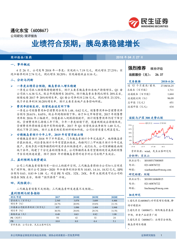 业绩符合预期,胰岛素稳健增长