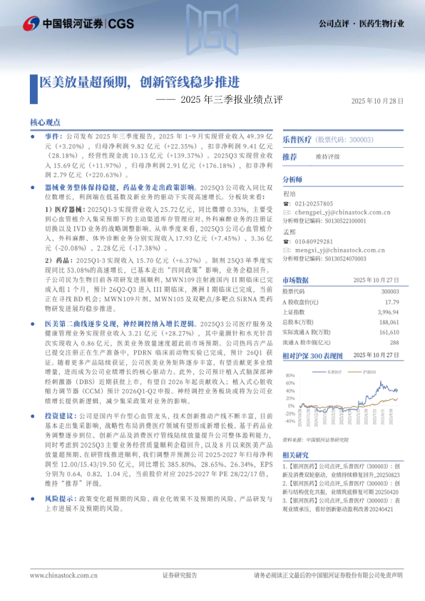 2025年三季报业绩点评:医美放量超预期,创新管线稳步推进