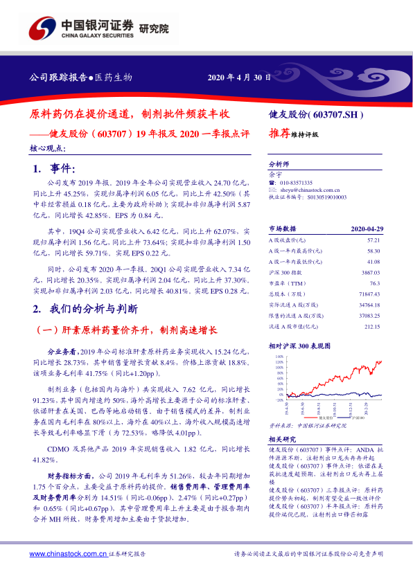 19年报及2020一季报点评:原料药仍在提价通道,制剂批件频获丰收