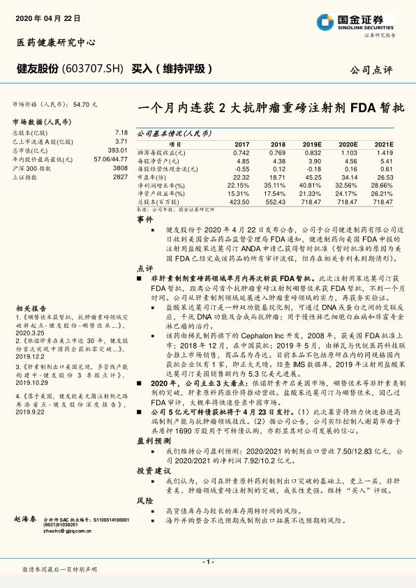 一个月内连获2大抗肿瘤重磅注射剂FDA暂批