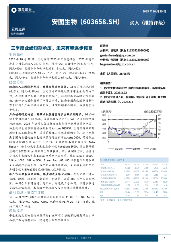 产品创新研发持续,新领域拓展有望逐步贡献长期增长。Q3公司研发费用达到1.43亿元,占营业收入比例13.36%,产品创新研发持续推进,2025年公司已成功推出液相色谱串联质谱系列产品,涵盖液相色谱串联质谱检测系统Automs TQ6000、全自动样本前处理设备及其配套试剂,通过前处理与串联质谱的整合,进一步推出了国内首创的液相色谱串联质谱流水线Automs Q600。同时微生物质谱检测系统Autof T系列、全自动样本前处理系统AutoMaster、全自动化学发光免疫分析仪AutoLumo S900、微生物培养监测仪BC120Plus等新品已陆续获证上市。在NGS方面,全资子公司思昆生物已完成Sikun全系列产品布局,推出Sikun2000、Sikun1000、Sikun500、Sikun RapidGS480四款基因测序仪及全自动病原分析系统,成功切入非临床市场,全自动基因测序文库制备仪AISPre3200已顺利进入试产阶段。