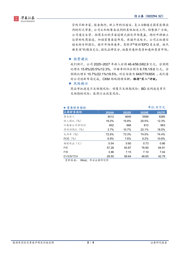 我们预计,公司2025~2027年收入分别46.4/56.0/62.9亿元,分别同比增长15.8%/20.5%/12.3%,归母净利润分别为6.7/8.1/9.6亿元,分别同比增长10.7%/22.1%/18.5%,对应估值为94X/77X/65X。我们看好公司创新布局完成,CKM领域持续深耕。维持“买入”评级。