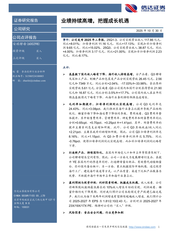 安琪酵母(600298)