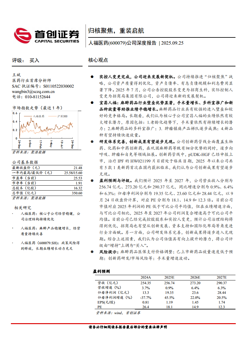 人福医药(600079):公司深度报告:归核聚焦,重装启航