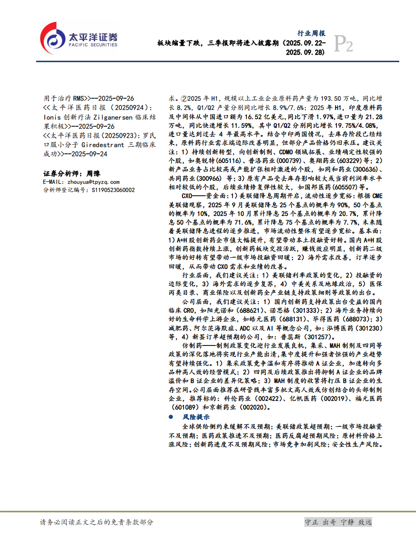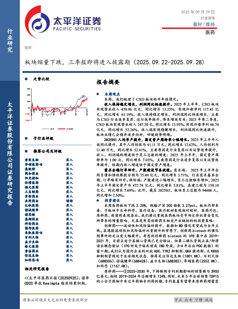 医药:板块缩量下跌,三季报即将进入披露期(2025.09.22-2025.09.28)