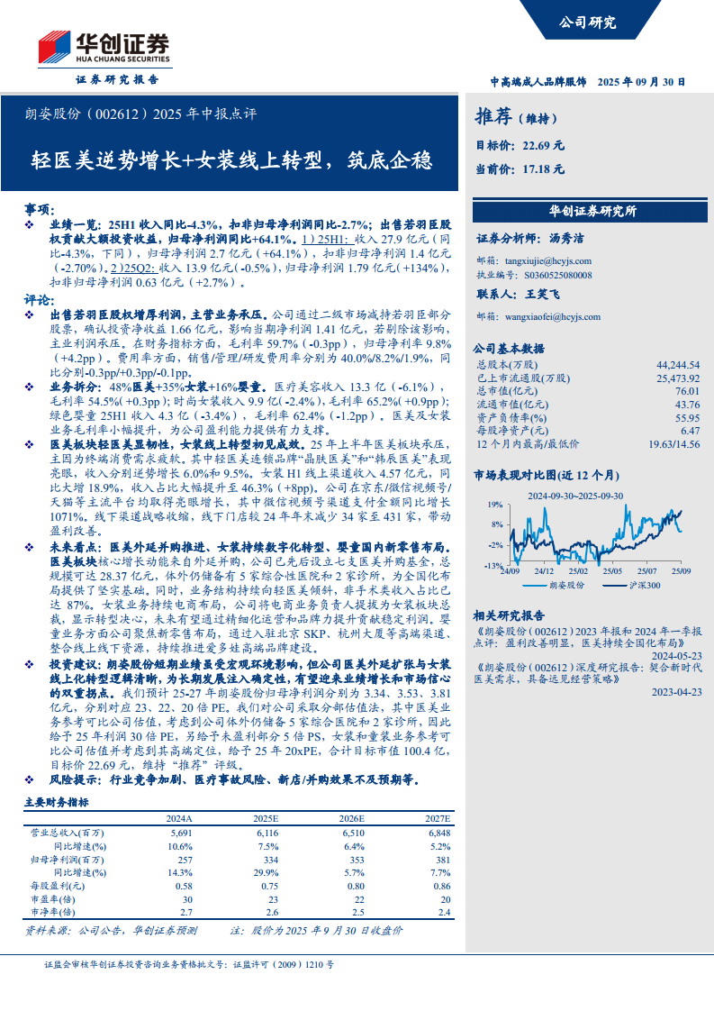 朗姿股份(002612):2025年中报点评:轻医美逆势增长+女装线上转型,筑底企稳