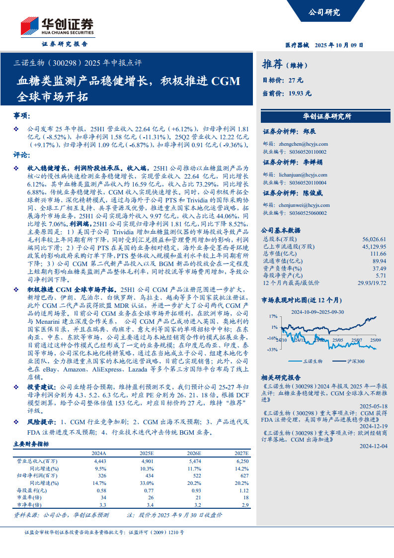 三诺生物(300298):2025年中报点评:血糖类监测产品稳健增长,积极推进CGM全球市场开拓