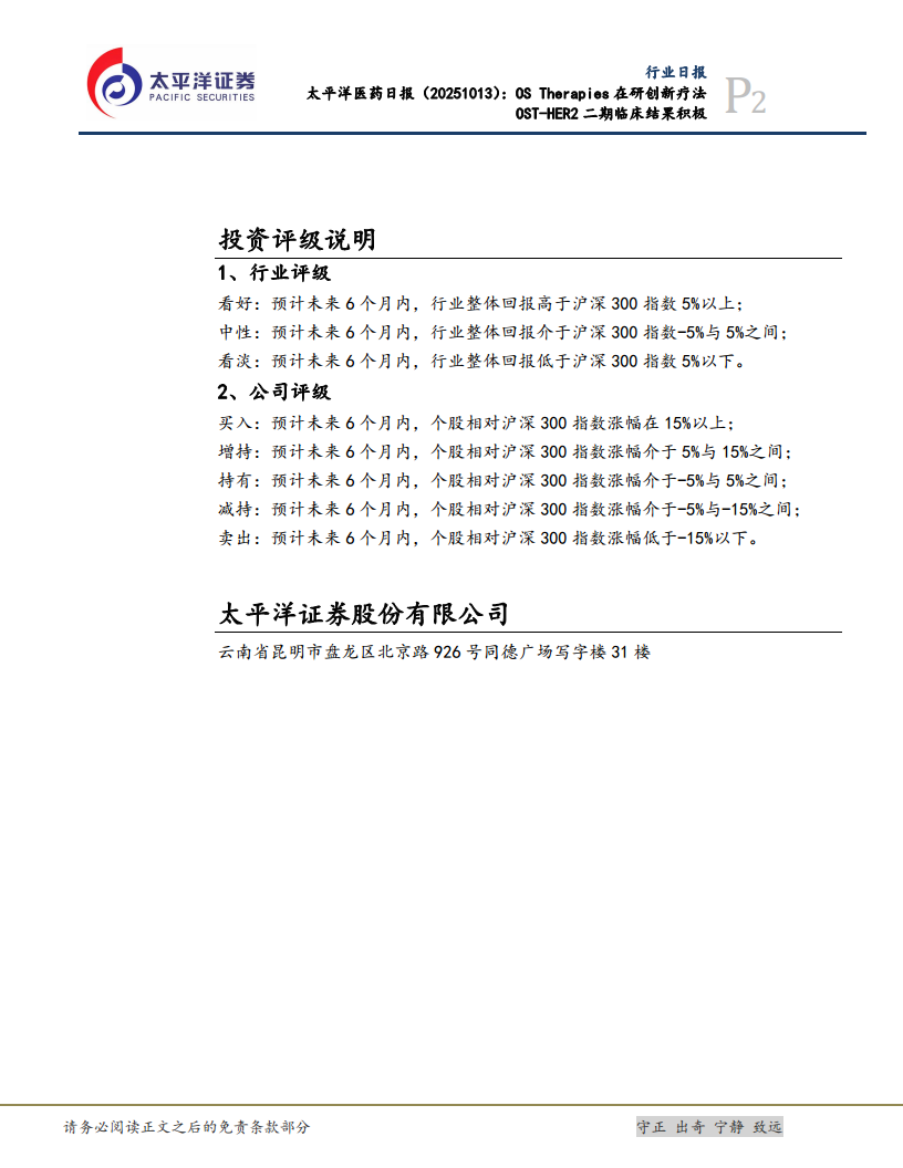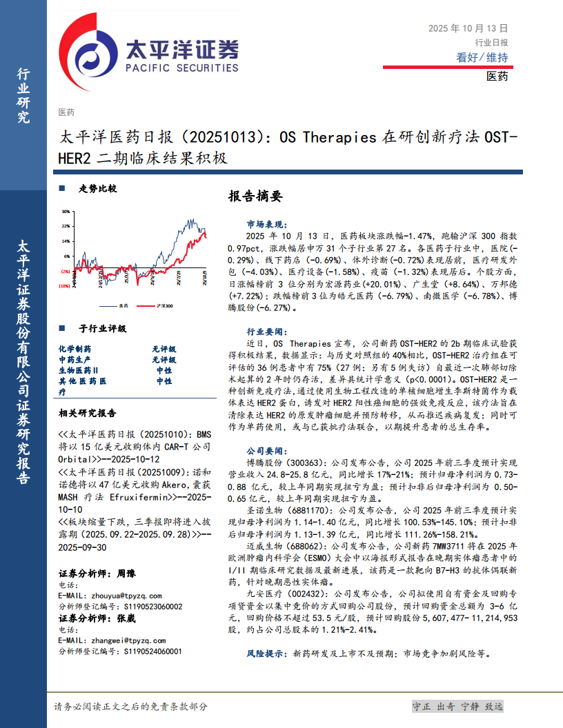 太平洋医药日报:OSTHERapies在研创新疗法OST-HER2二期临床结果积极