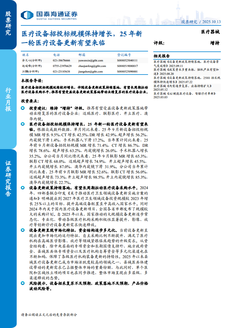 医疗设备招投标规模保持增长,25年新一轮医疗设备更新有望来临