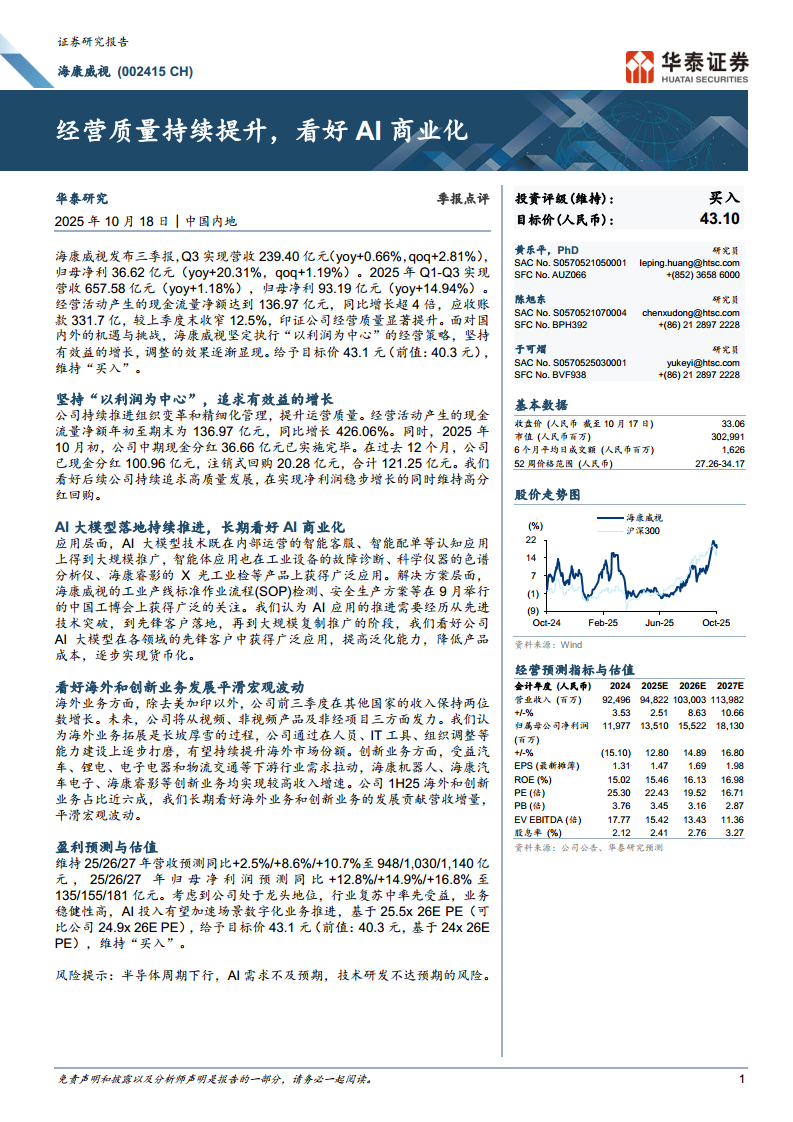 海康威视(002415):经营质量持续提升,看好AI商业化
