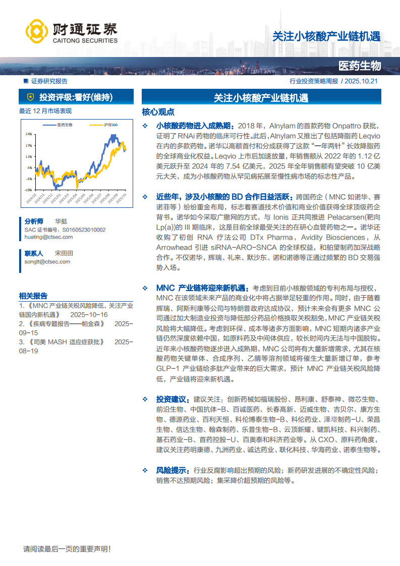 医药生物行业投资策略周报:关注小核酸产业链机遇
