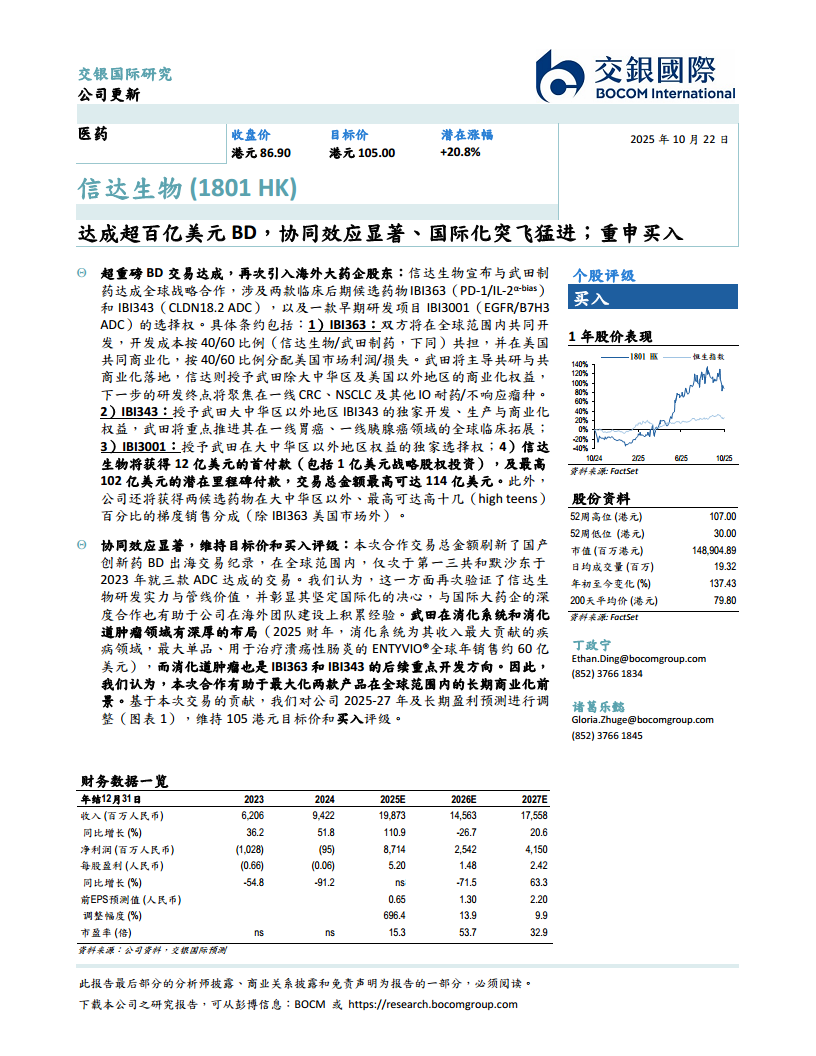 信达生物(01801):达成超百亿美元BD,协同效应显著、国际化突飞猛进,重申买入