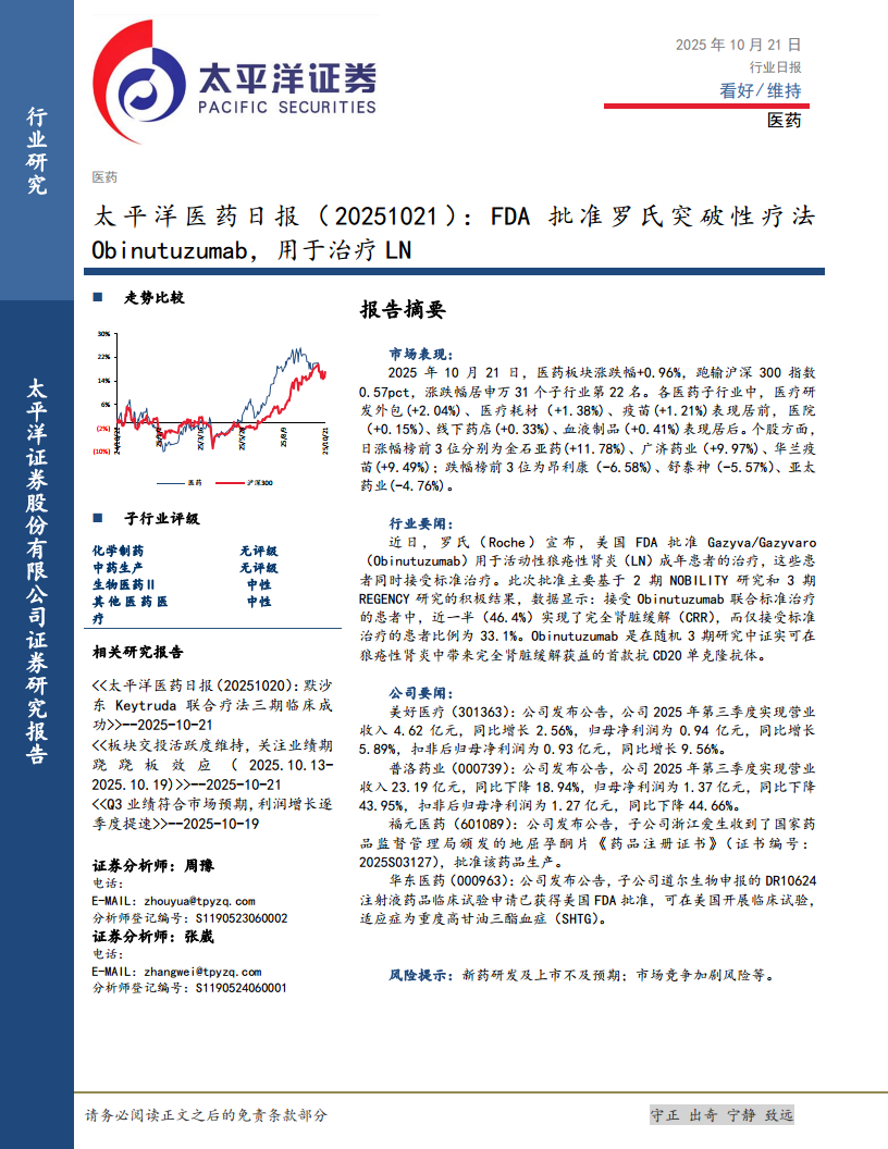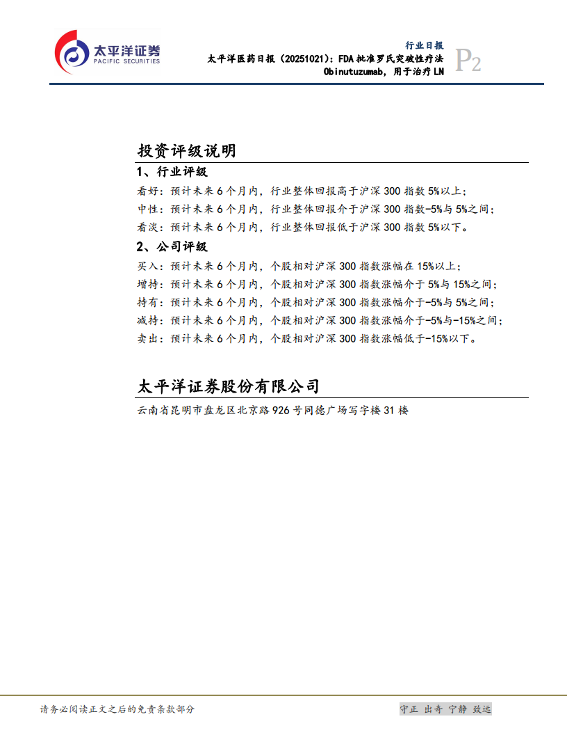 太平洋医药日报:FDA批准罗氏突破性疗法Obinutuzumab,用于治疗LN