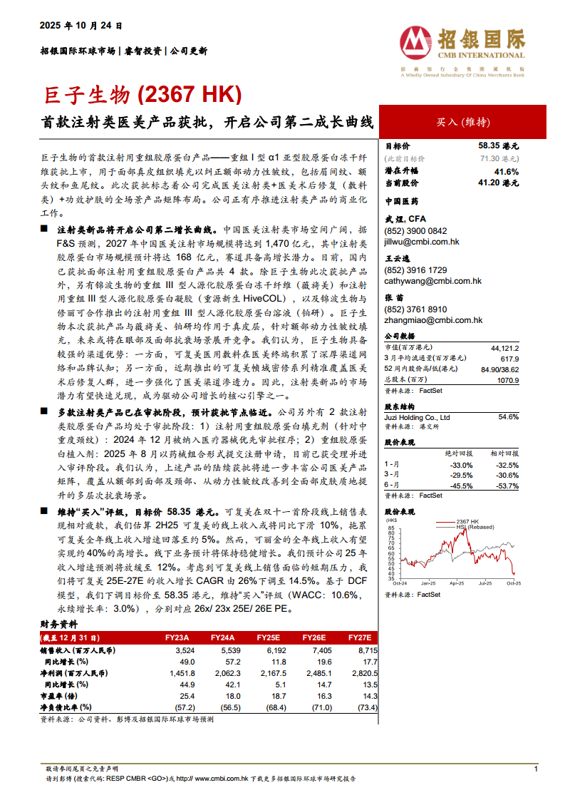 巨子生物(02367):首款注射类医美产品获批,开启公司第二成长曲线