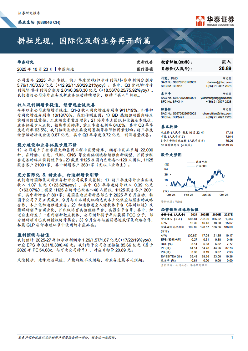 药康生物(688046):耕耘兑现,国际化及新业务再开新篇