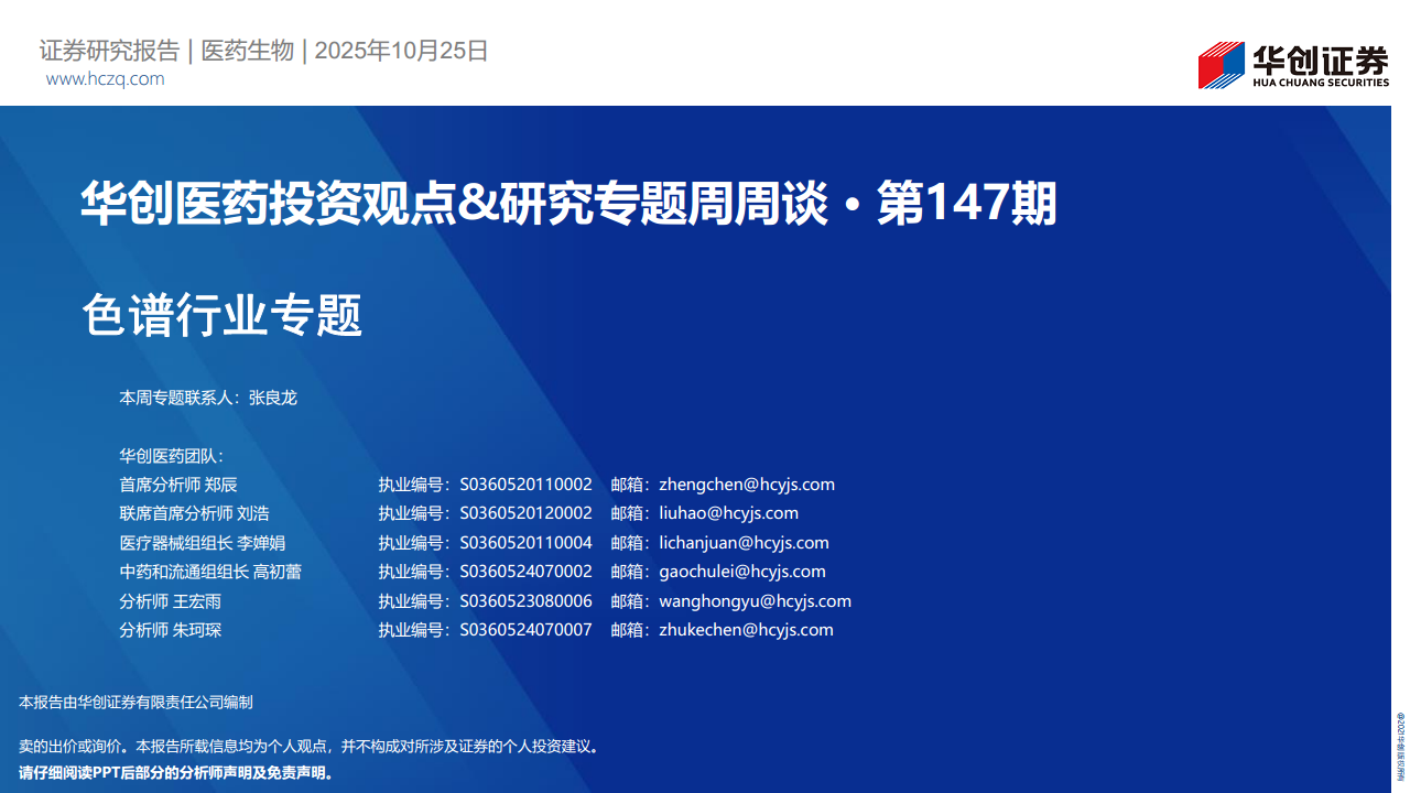 第147期:色谱行业专题:华创医药投资观点&研究专题周周谈