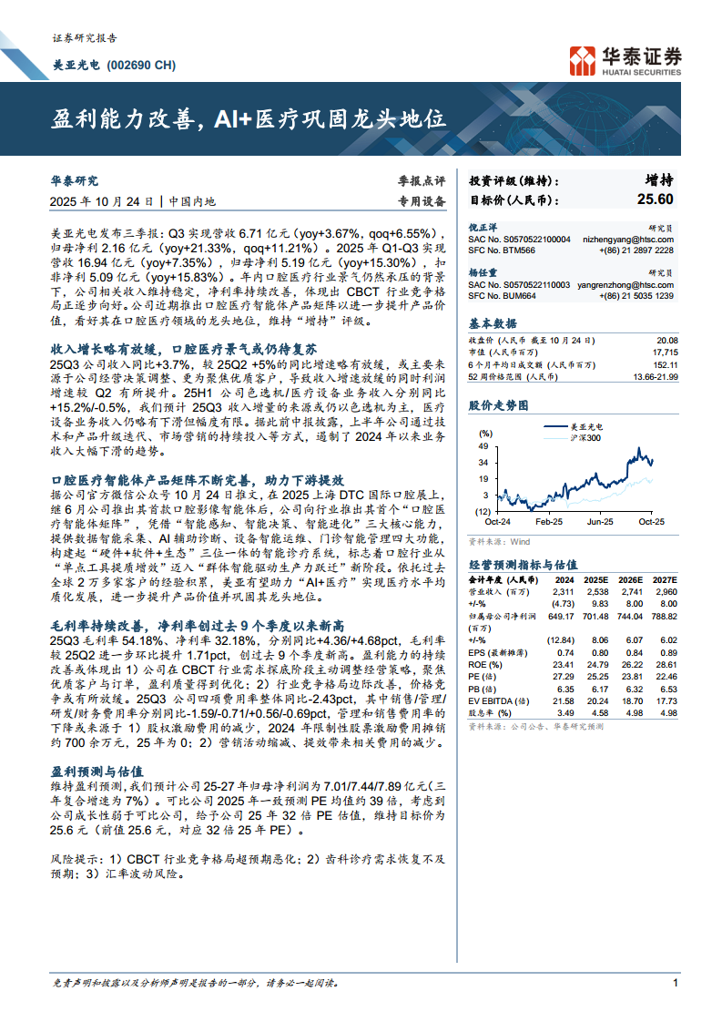 美亚光电(002690):盈利能力改善,AI+医疗巩固龙头地位