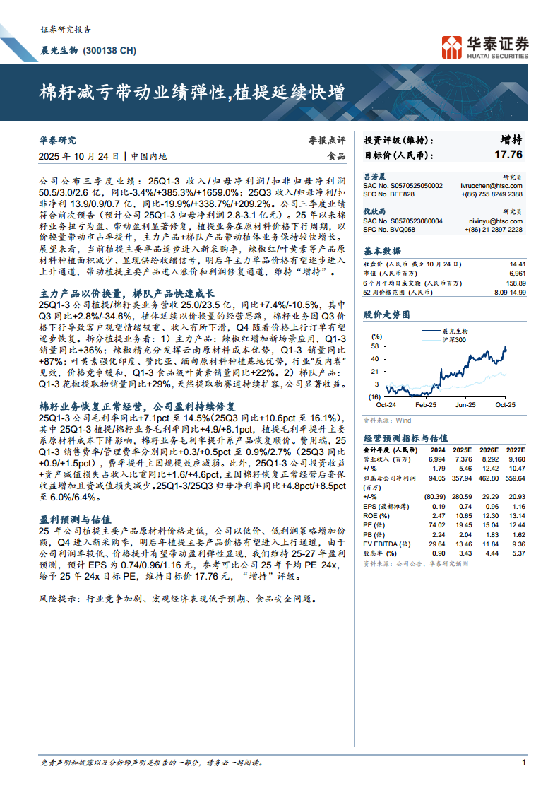 晨光生物(300138):棉籽减亏带动业绩弹性,植提延续快增