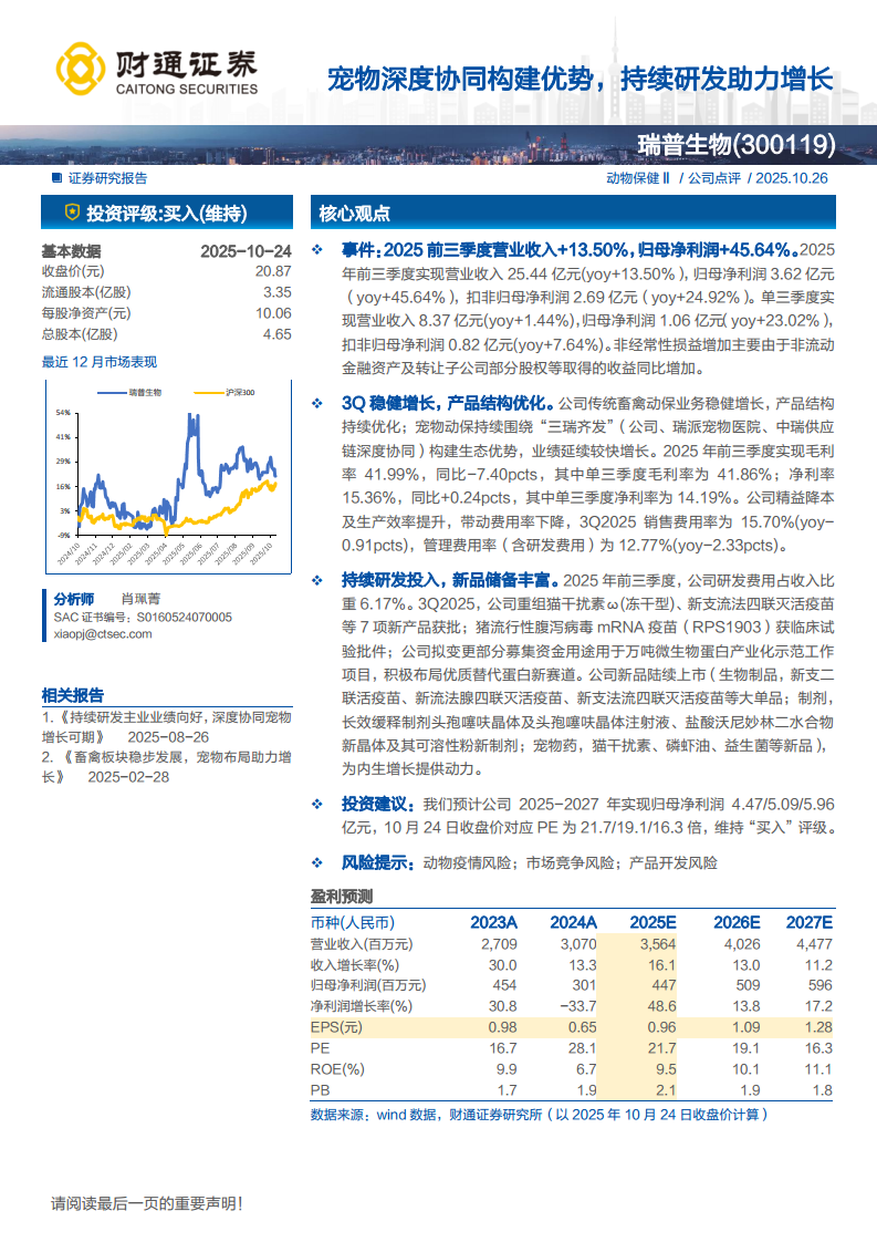 瑞普生物(300119):宠物深度协同构建优势,持续研发助力增长