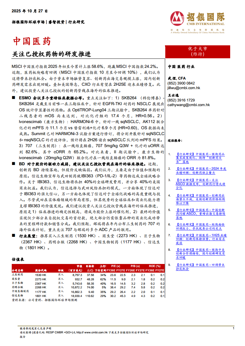 中国医药:关注已授权药物的研发推进