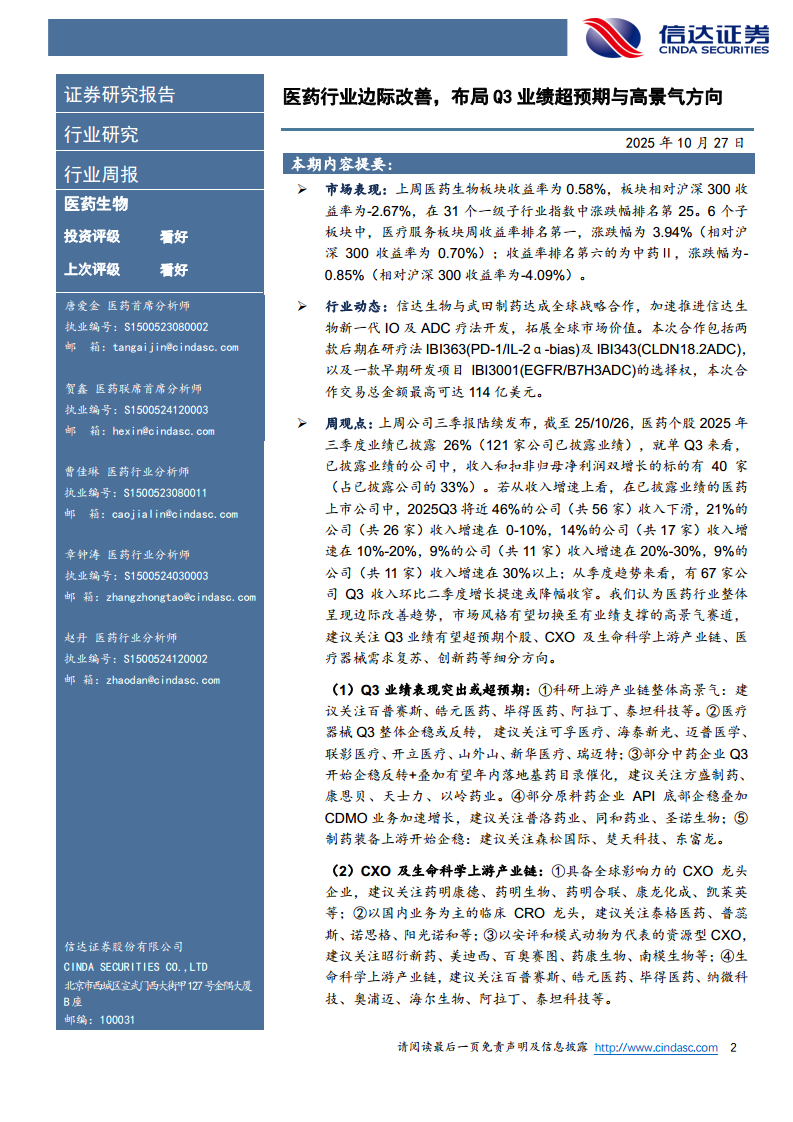 医药行业边际改善,布局Q3业绩超预期与高景气方向