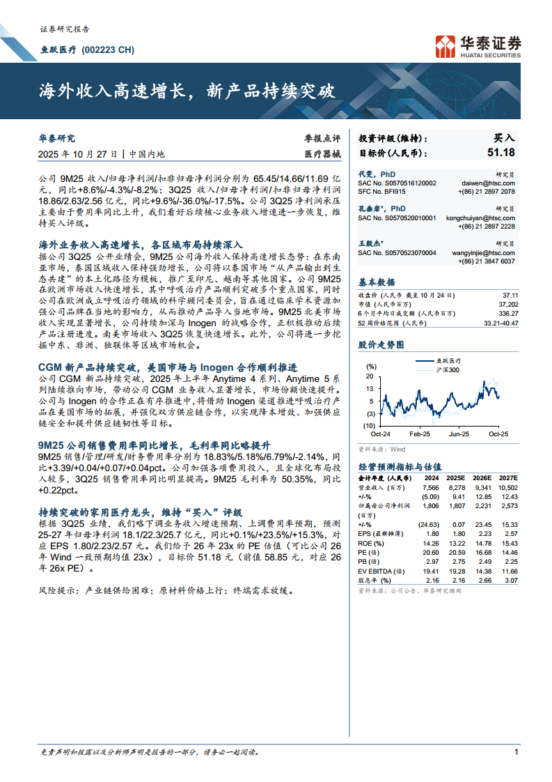 鱼跃医疗(002223):海外收入高速增长,新产品持续突破