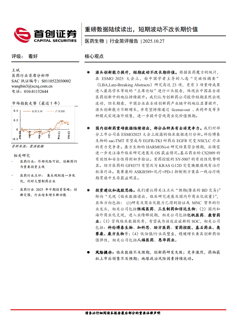 医药生物行业简评报告:重磅数据陆续读出,短期波动不改长期价值