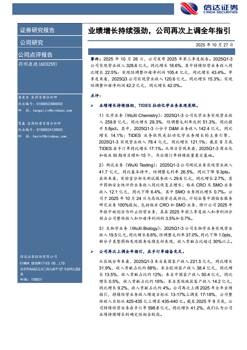 药明康德(603259):业绩增长持续强劲,公司再次上调全年指引