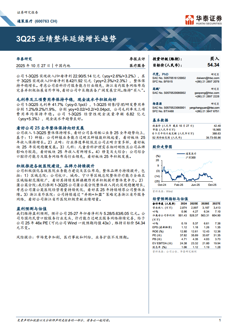 通策医疗(600763):3Q25业绩整体延续增长趋势