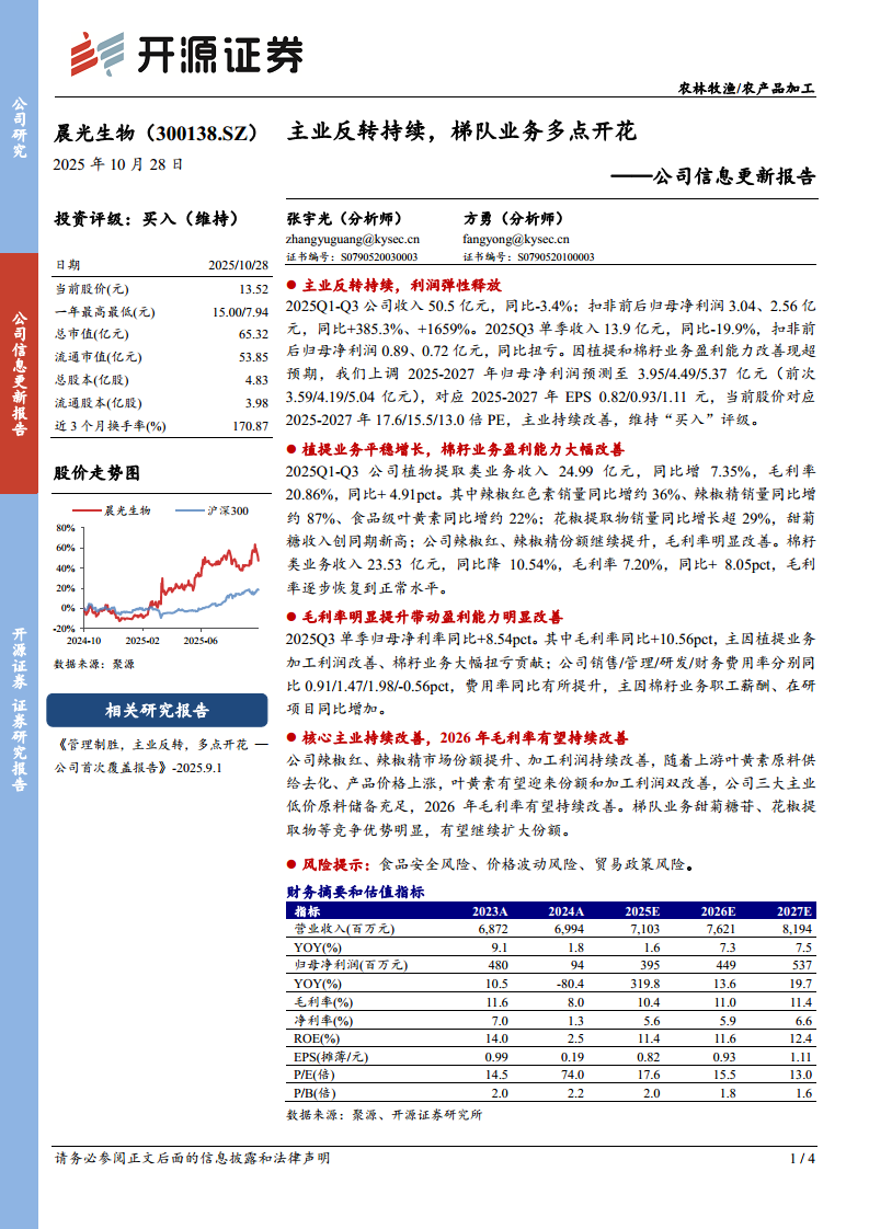 晨光生物(300138):公司信息更新报告:主业反转持续,梯队业务多点开花