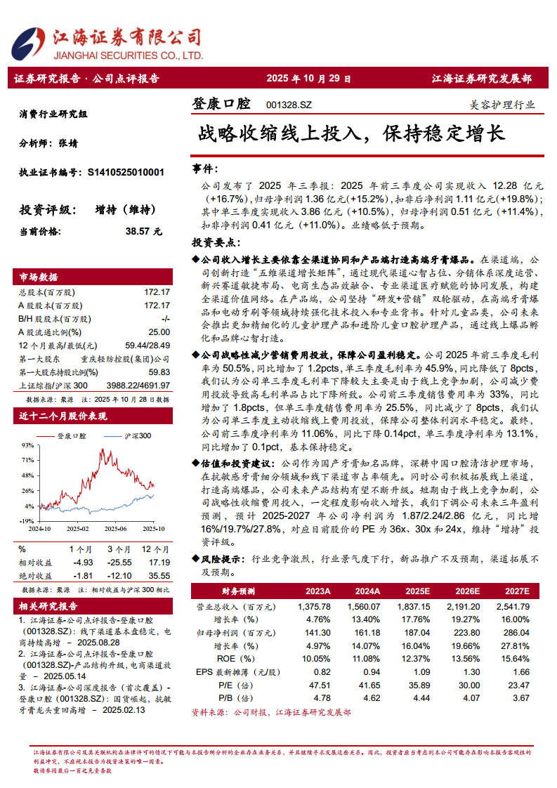 登康口腔(001328):战略收缩线上投入,保持稳定增长