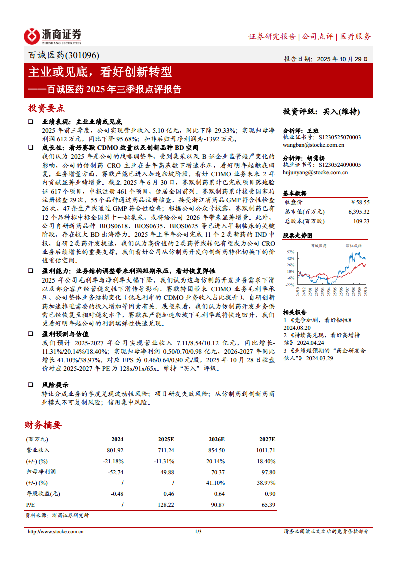 百诚医药(301096):2025年三季报点评报告:主业或见底,看好创新转型