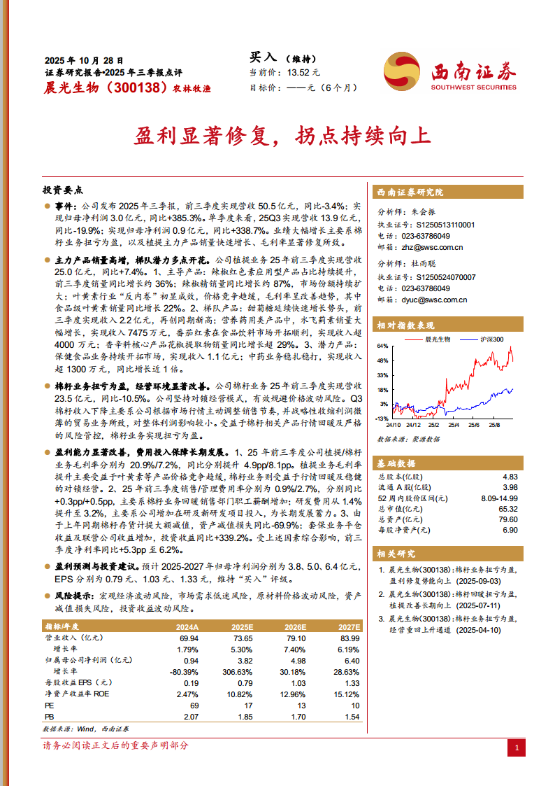 晨光生物(300138):盈利显著修复,拐点持续向上