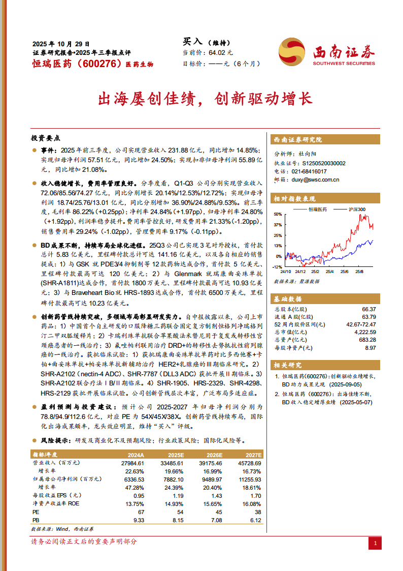 恒瑞医药(600276):出海屡创佳绩,创新驱动增长