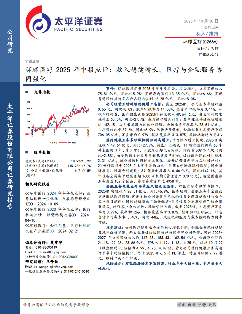 环球医疗(02666):2025年中报点评:收入稳健增长,医疗与金融服务协强化