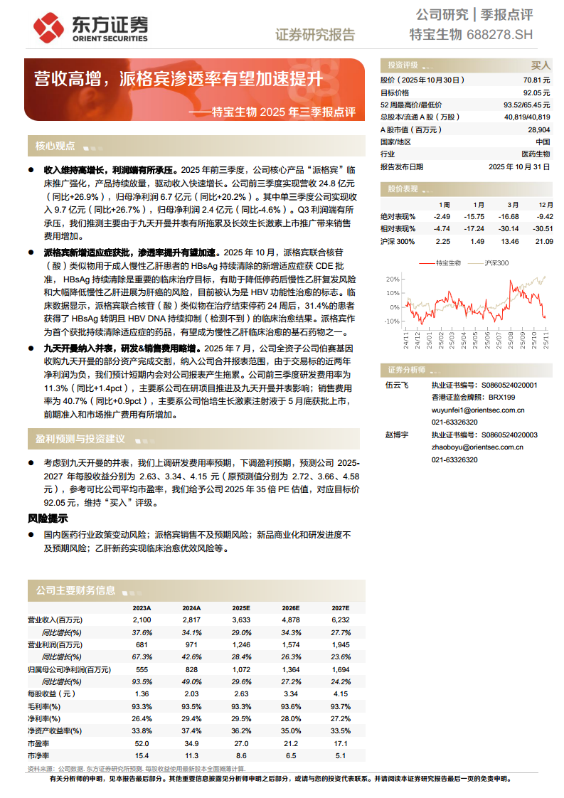 特宝生物(688278):2025 年三季报点评:营收高增,派格宾渗透率有望加速提升