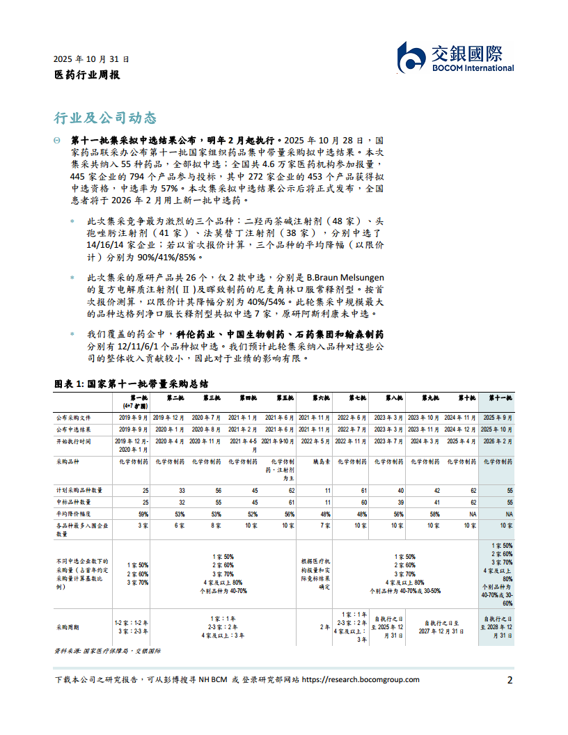 医药行业周报:十一批集采降幅较大但影响或有限,4Q板块催化剂有望改善投资情绪