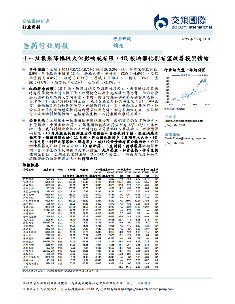 医药行业周报:中国药企闪耀ESMO大会,建议4Q25关注政策、学术大会、BD等催化剂