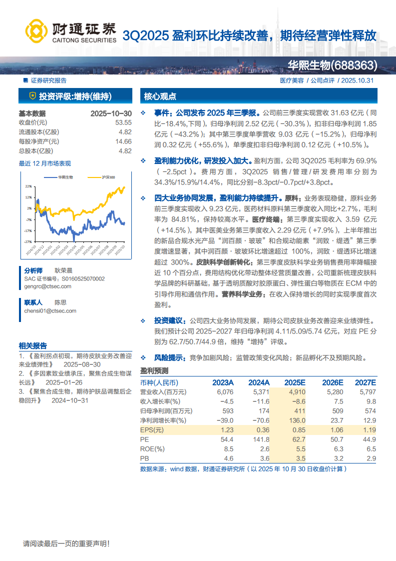 华熙生物(688363):3Q2025盈利环比持续改善,期待经营弹性释放
