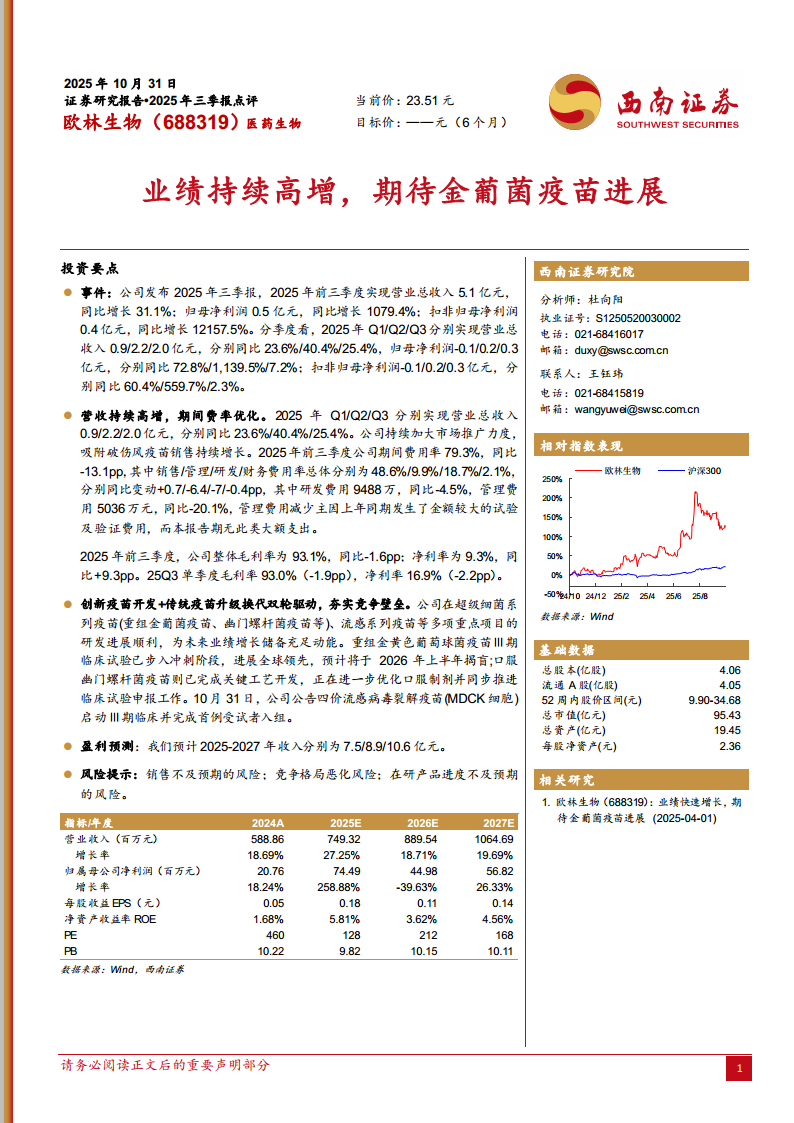 欧林生物(688319):业绩持续高增,期待金葡菌疫苗进展