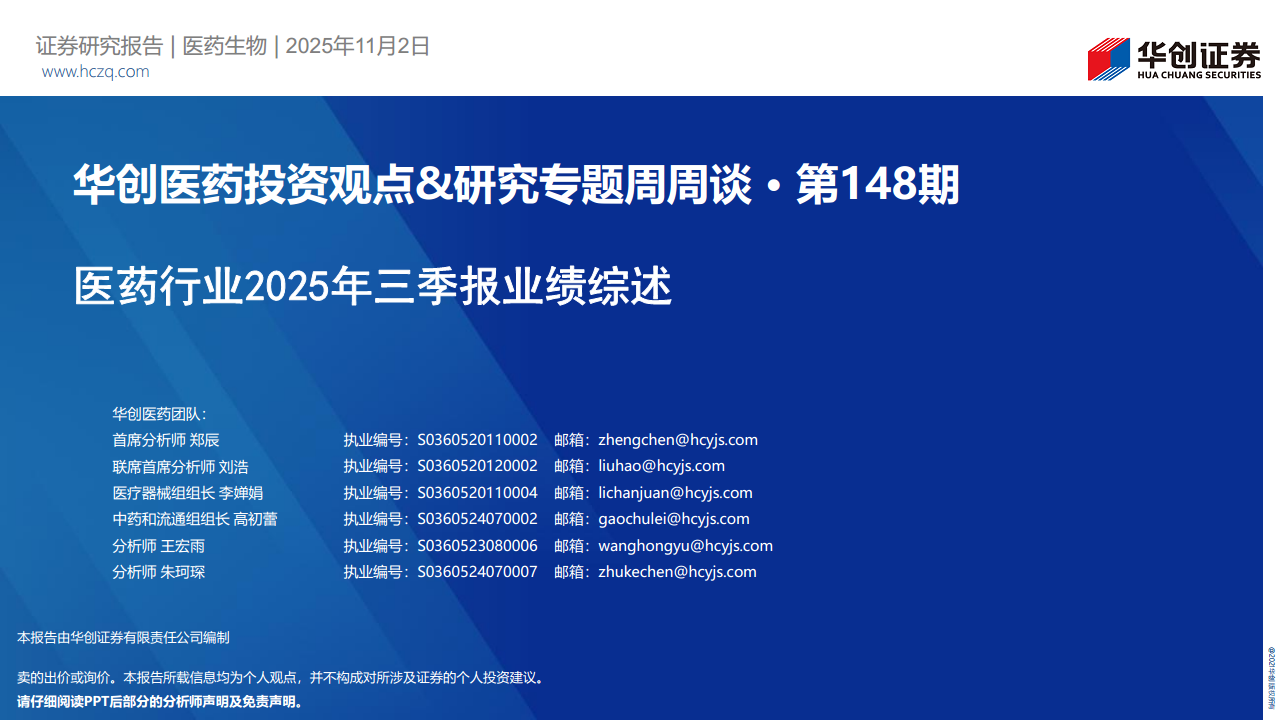 华创医药投资观点&研究专题周周谈·第148期:医药行业2025年三季报业绩综述