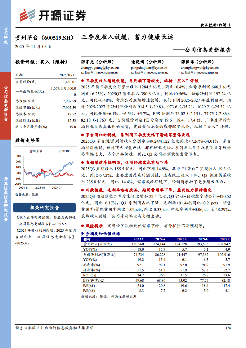 贵州茅台(600519):公司信息更新报告:三季度收入放缓,蓄力健康长远