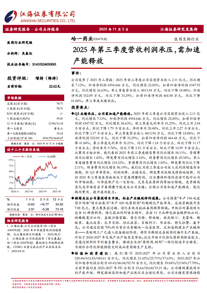 医药生物行业:2025年第三季度营收利润承压,需加速产能释放
