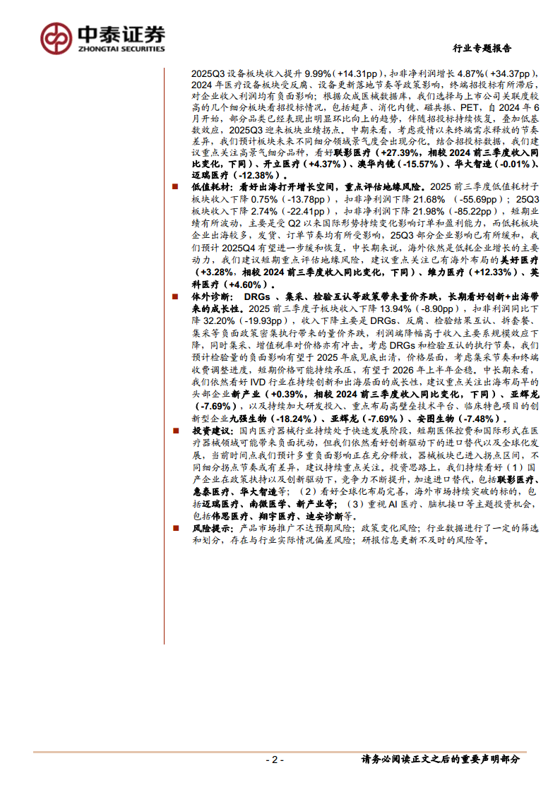 医疗器械板块2025三季报总结:高耗、设备拐点已现,创新+出海贡献增长动力