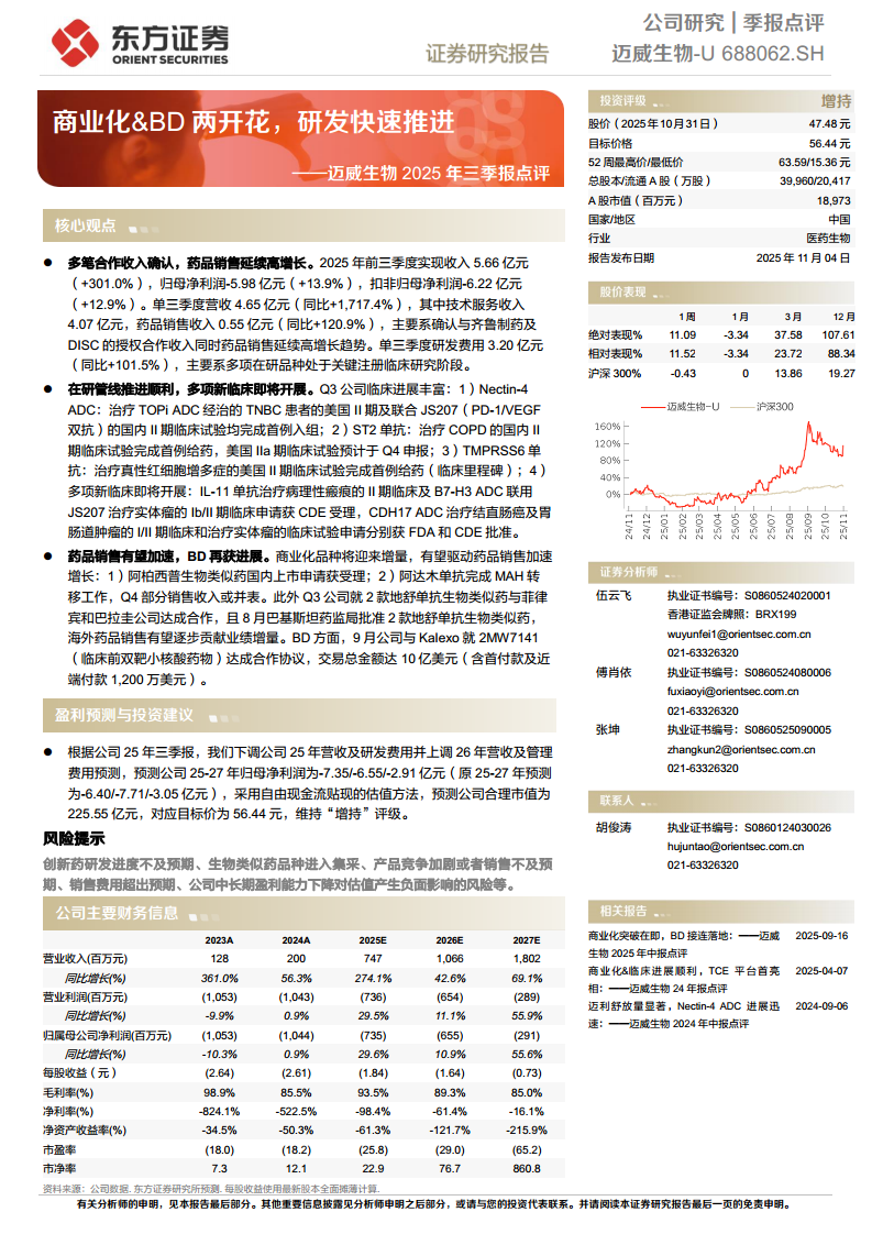 迈威生物(688062):商业化、BD两开花,研发快速推进