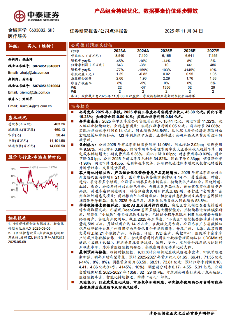 金域医学(603882):产品组合持续优化,数据要素价值逐步释放