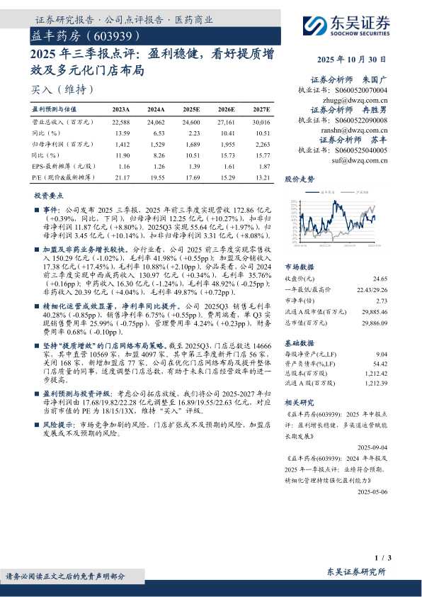 2025年三季报点评:盈利稳健,看好提质增效及多元化门店布局
