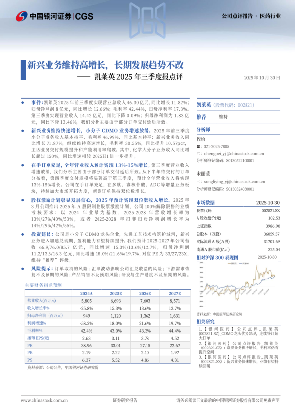 凯莱英2025年三季度报点评:新兴业务维持高增长,长期发展趋势不改