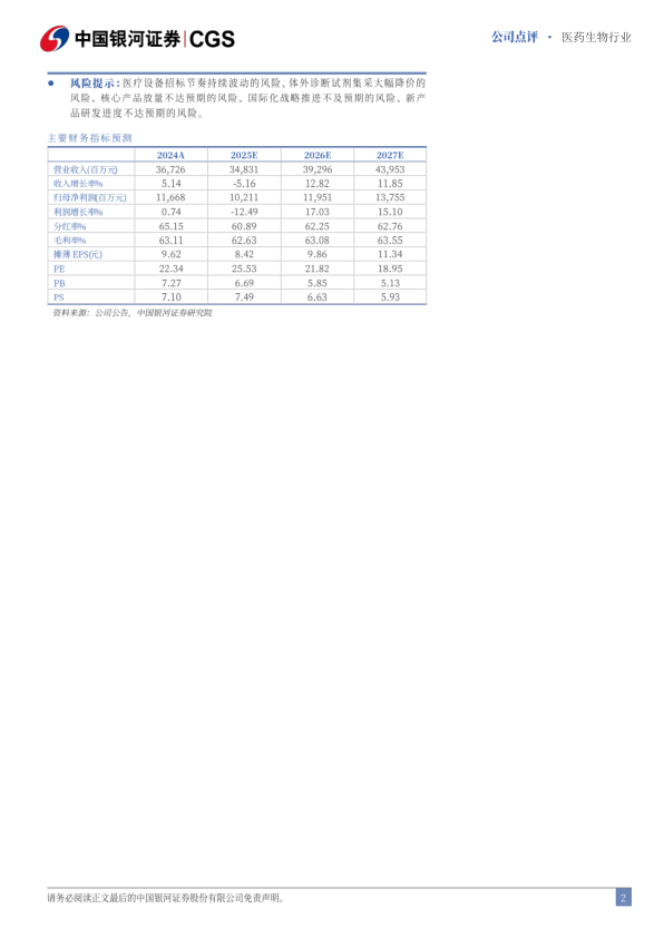 风险提示:医疗设备招标节奏持续波动的风险、体外诊断试剂集采大幅降价的风险、核心产品放量不达预期的风险、国际化战略推进不及预期的风险、新产品研发进度不达预期的风险。
